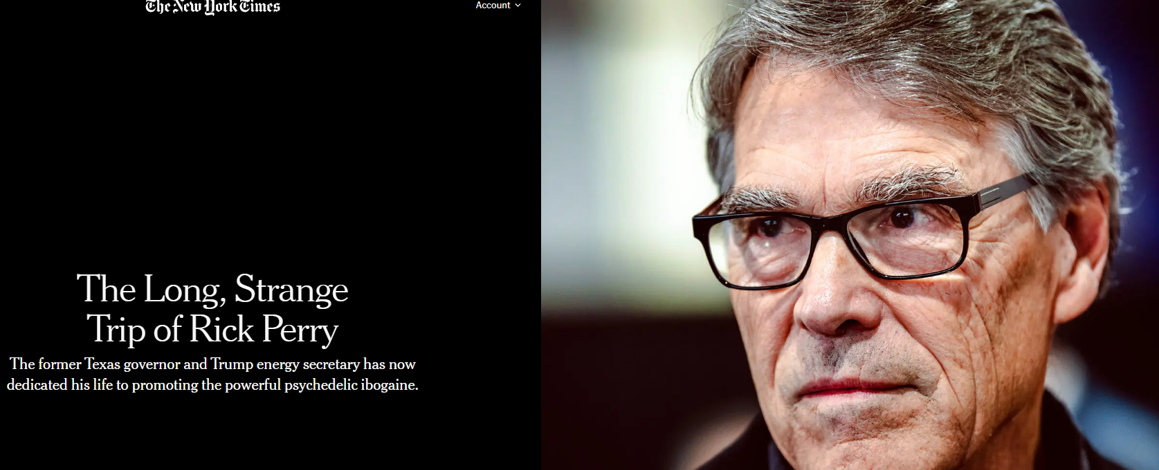 The former Texas governor and Trump energy secretary has now dedicated his life to promoting the powerful psychedelic ibogaine.